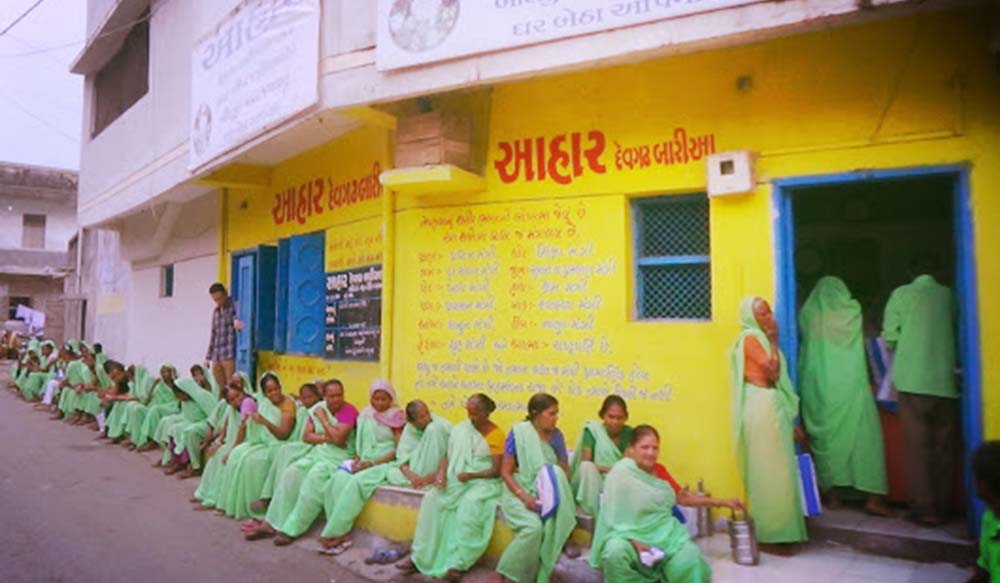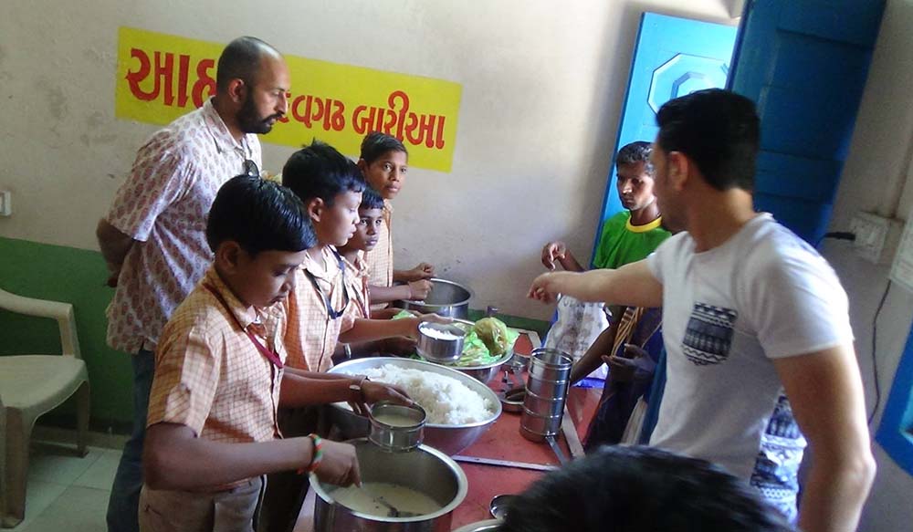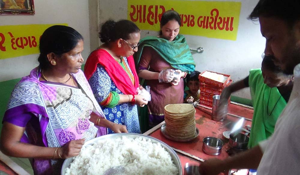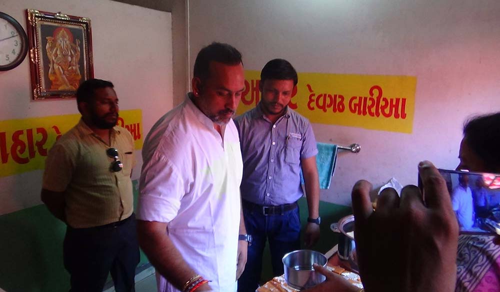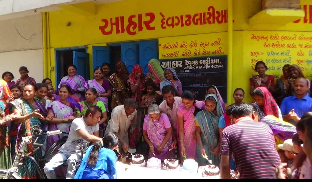 I bought a small pakka house from my own fund, and started to give cooked food to poor tribal people of Devgadh Baria on the holy day of Dussehra in 2012. Initially, cooked food was delivered to 30 poor people on a bike every day. Gradually the number of beneficiaries increased from 30 to 100. So there was a delay in giving meals to all the beneficiaries at home daily. After that food distribution was started at the food center (Aahar ) so that the beneficiaries could get their meals on time. For the first two years we provided free meals to poor people at our own expenses without taking any donations from anyone.. After that a Trust was formed and its name was registered as AAHAR CHARITABLE TRUST. At present we provide cooked meals to about 140 poor people daily. Of these, 18 are disabled, 82 are widows or widowers and 40 are very poor.